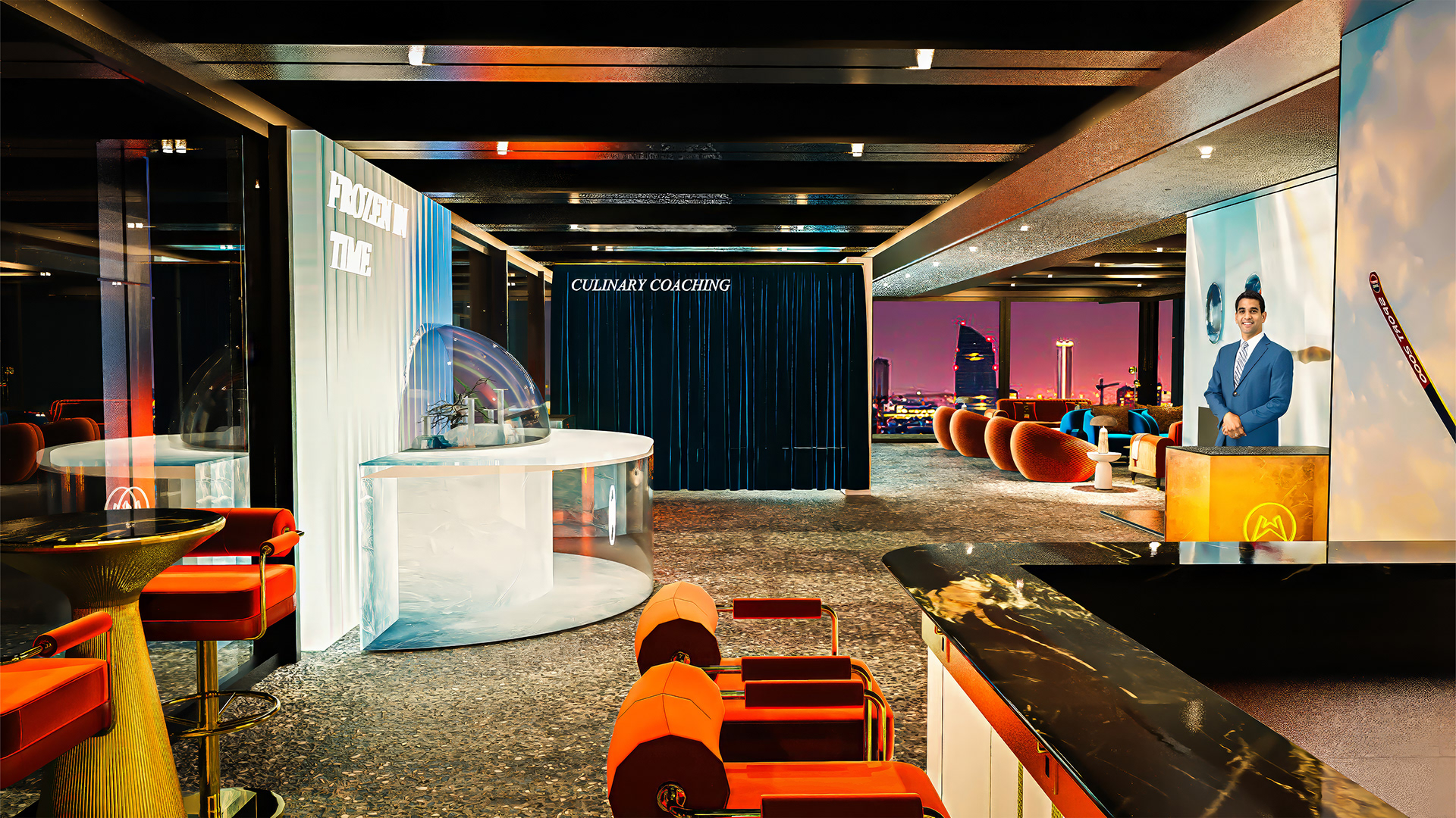 A high-profile VVIP dinner and lounge experience hosted on a luxury hotel rooftop in Milan during the Winter Olympics. Designed for an exclusive guest list, the space blended Italian elegance with modern design, featuring bespoke furnishings, sculptural lighting, and immersive digital displays. The environment included curated dining zones, an eSports-themed lounge, and private networking areas, offering guests a sophisticated setting to connect, celebrate, and experience the Games in style.