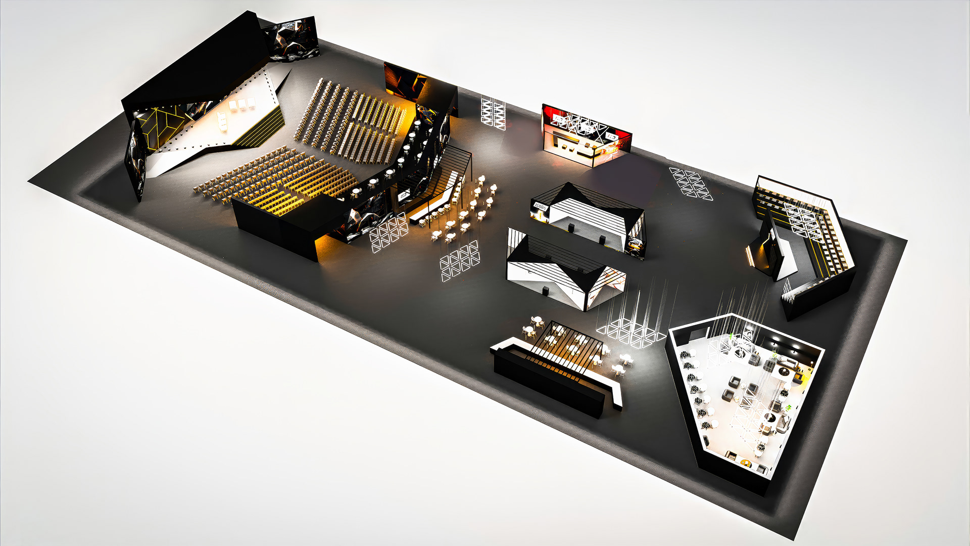 This high-profile gaming conference was designed to merge modern architecture, cutting-edge technology, and bold visual storytelling within a large-scale main hall. The layout featured a dynamic main stage with immersive lighting and motion graphics, interactive zones for hands-on gaming experiences, and a premium lounge bar for networking. Sponsored areas integrated branded light projections and digital installations, all contributing to a high-energy environment that celebrated innovation and the global culture of gaming.