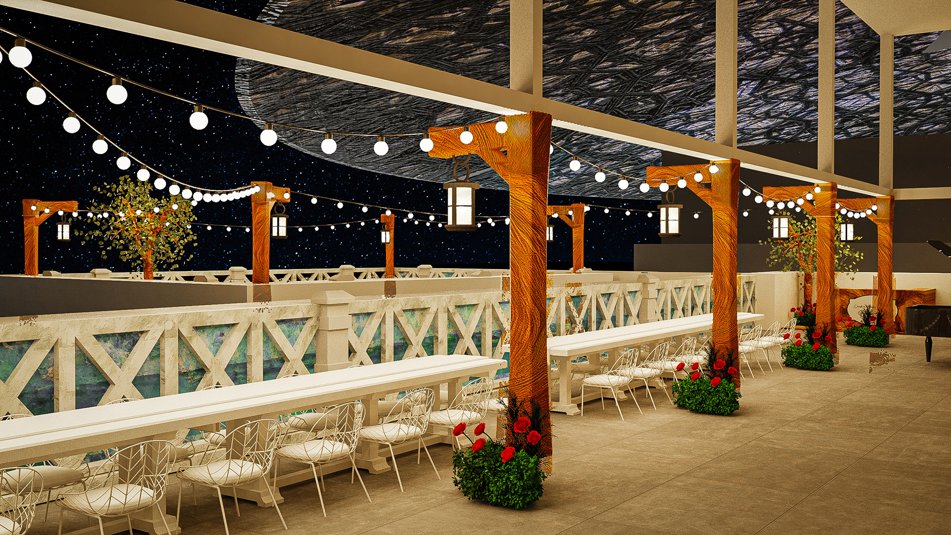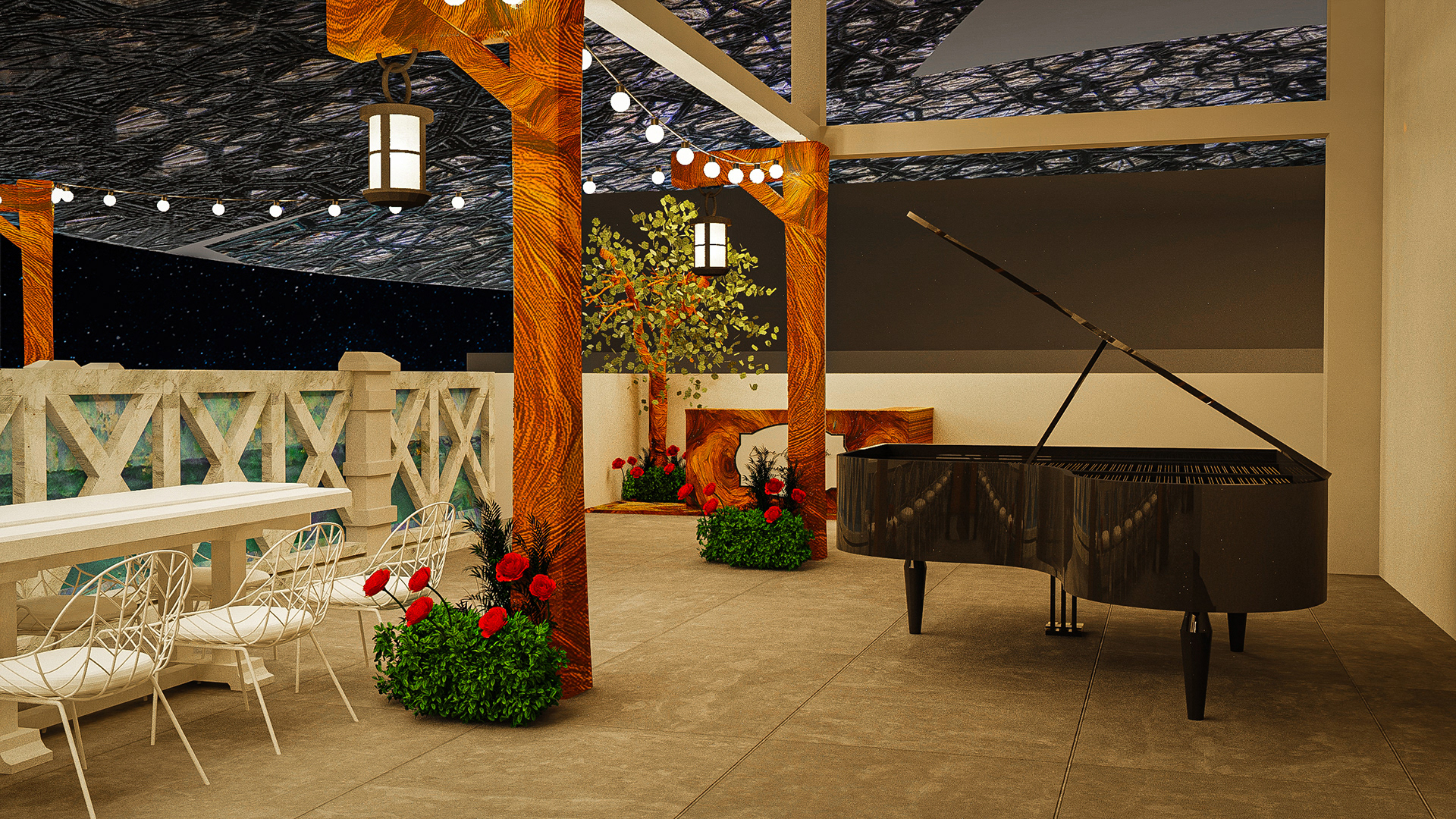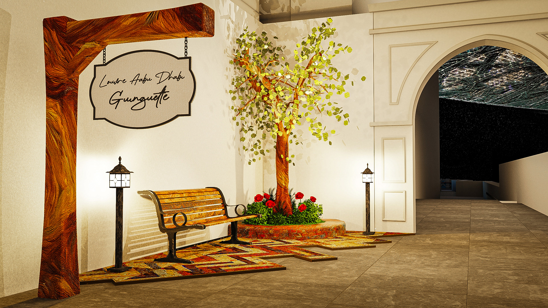 This one-of-a-kind project involved the design of a secret Guinguette dinner at the Louvre Abu Dhabi. Inspired by Post-Impressionist art, I used AI-generated textures within my renders, which were later hand-painted by artists to create richly layered, tactile surfaces. The result was a seamless blend of digital design and traditional craftsmanship. Hosted for 70 VIP guests, the dinner took place on a platform surrounded by water at the museum’s edge — an intimate, art-inspired experience that transformed one of the world’s most iconic locations into a living masterpiece.